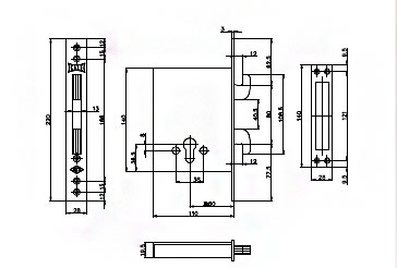 Врезной цилиндровый замок для металлических дверей Kale-kilit 267 (60 мм). с распорными ригелями. Цвет: хром. Цвет цилиндра-сатен.